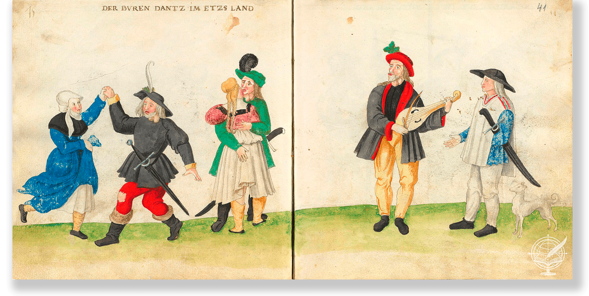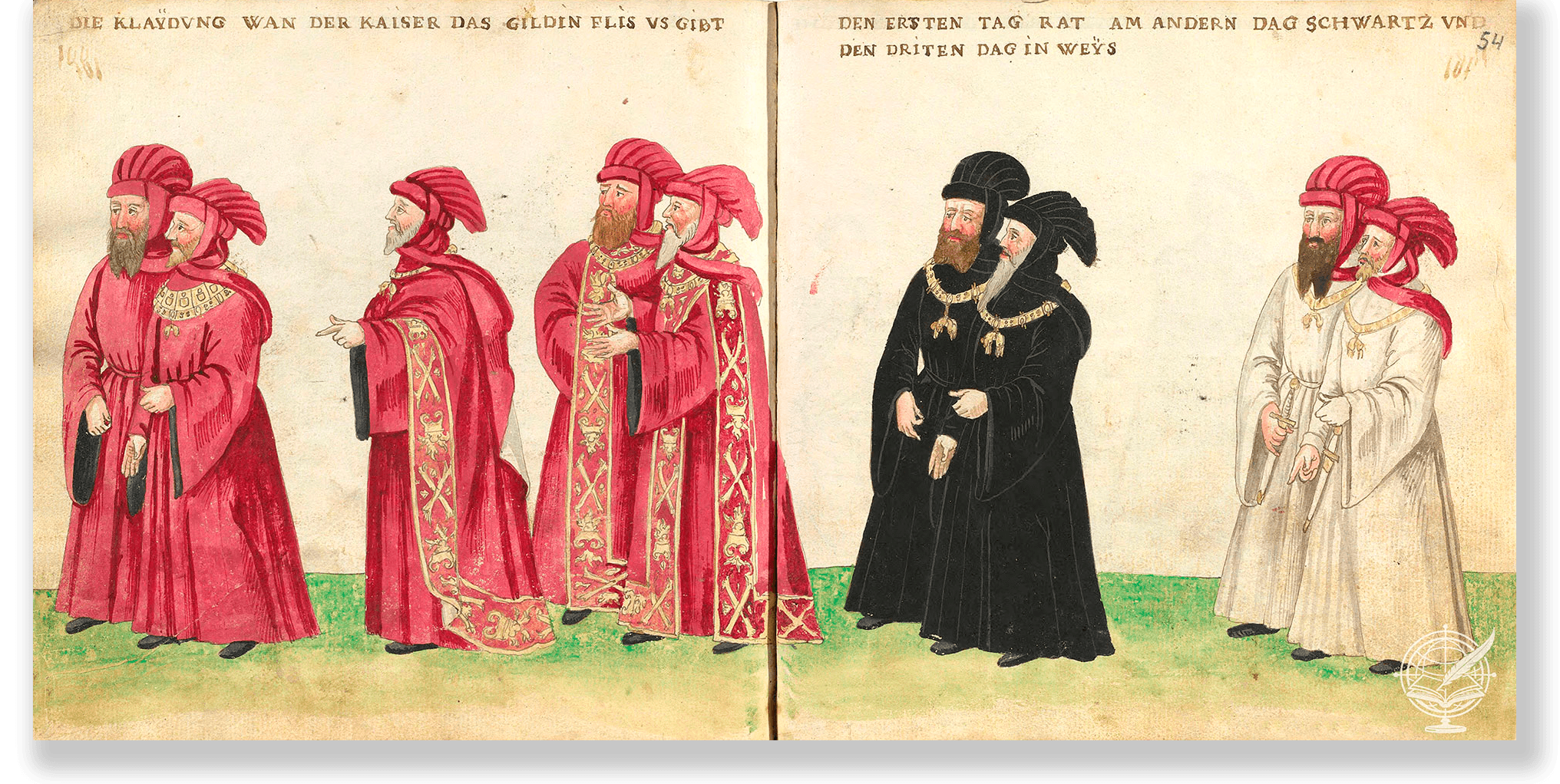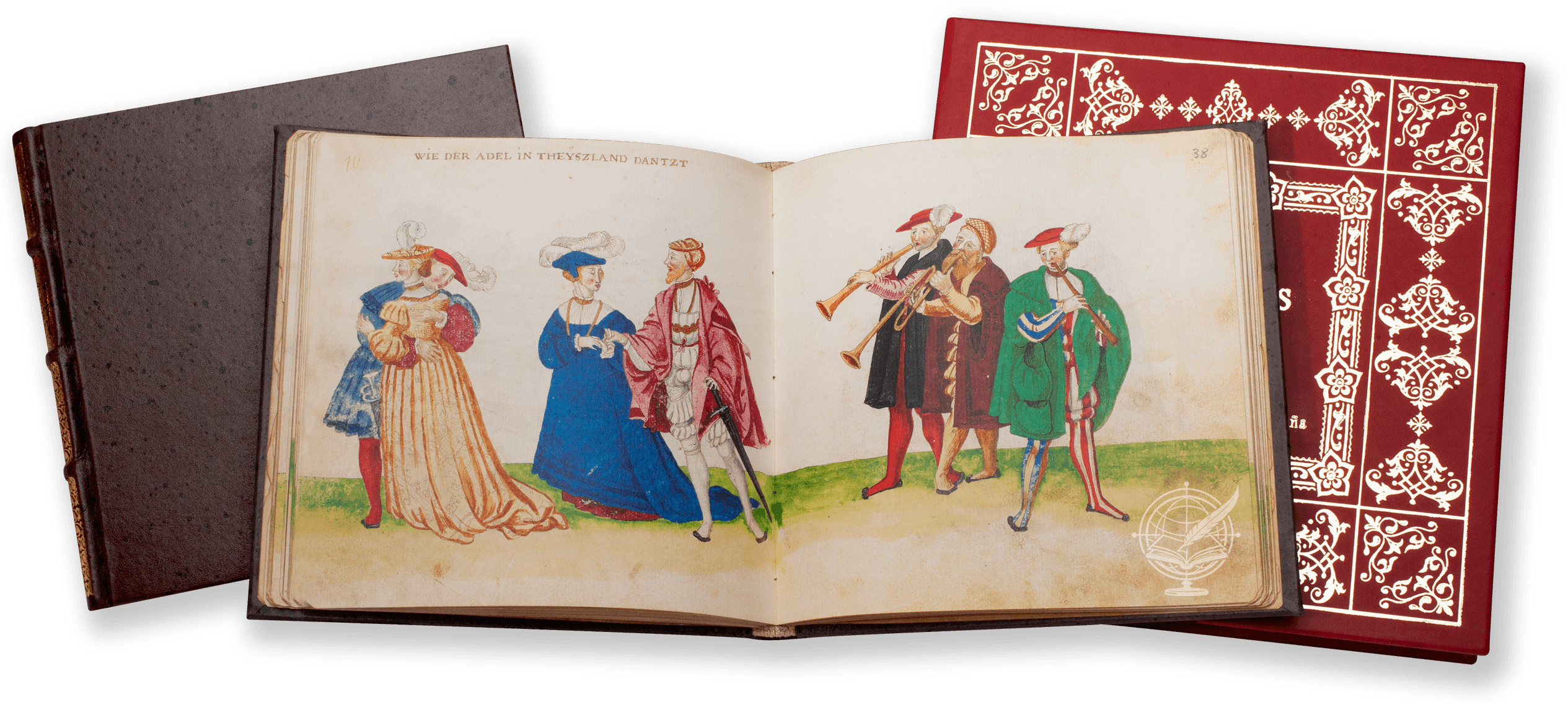 Crafted in imperial cities like Augsburg and Nuremberg, renowned for their artistic finesse in illustrating fashion, this manuscript might have been a product of travels alongside the emperor, embodying a fusion of Spanish, Flemish, and German fashion influences, depicting the fluidity of image exchange between these regions.