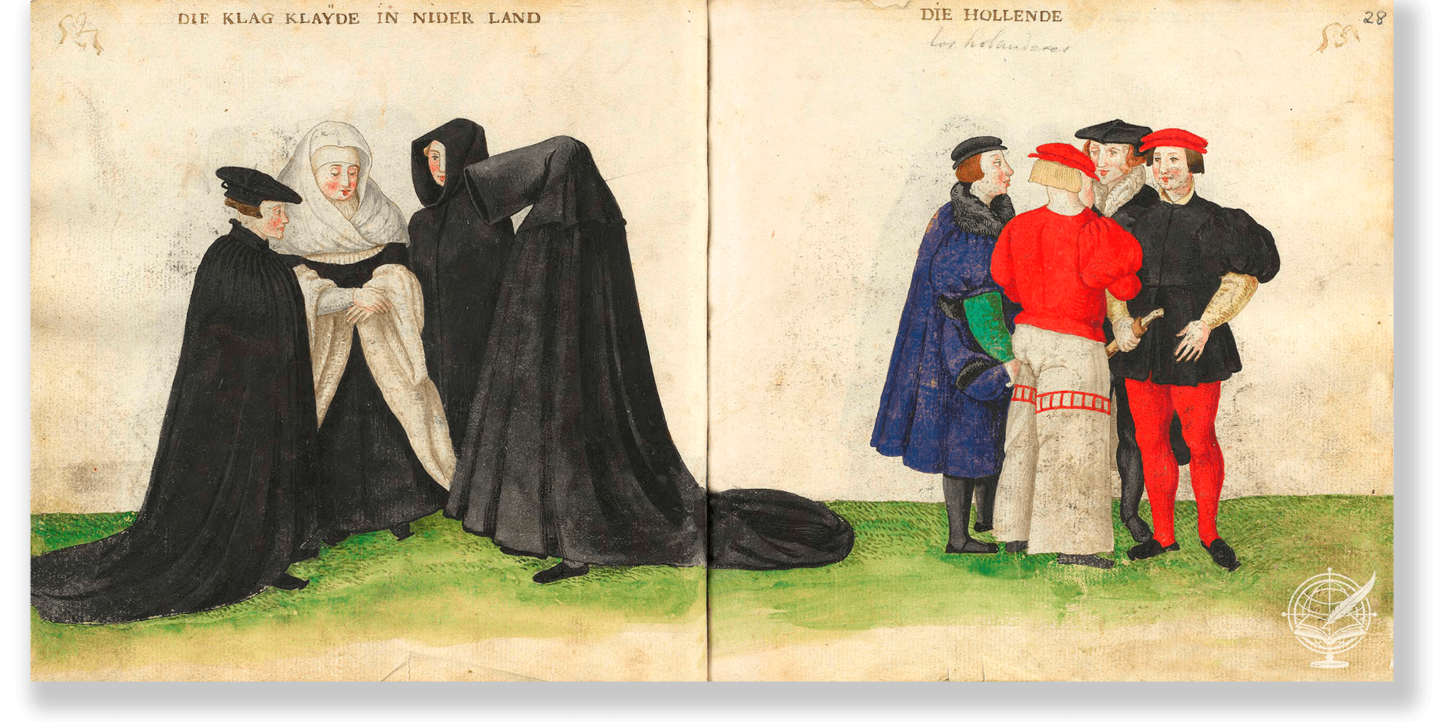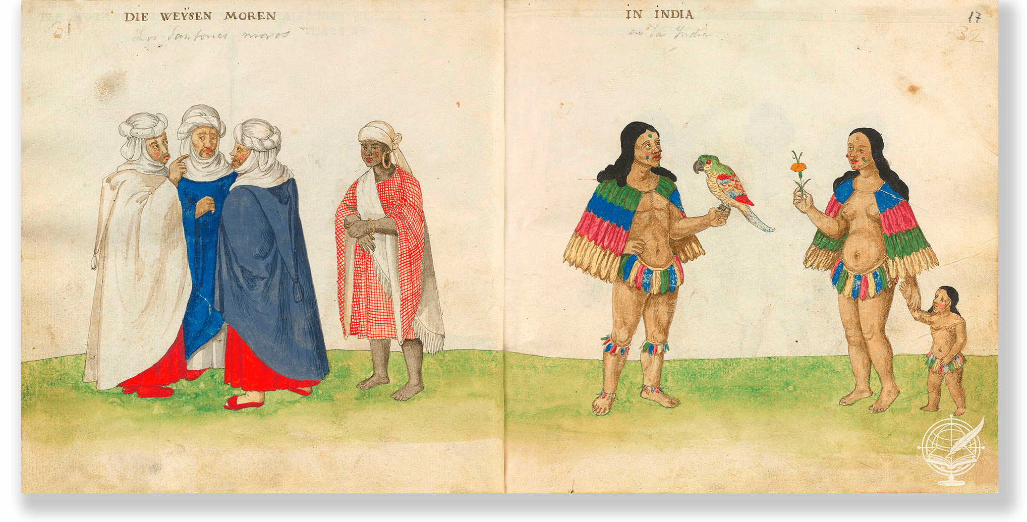 Dating back to around 1546-1547, this manuscript captures attire from Spain, neighboring regions under the rule of Holy Roman Emperor Charles V, and even far-off lands like America and Africa.